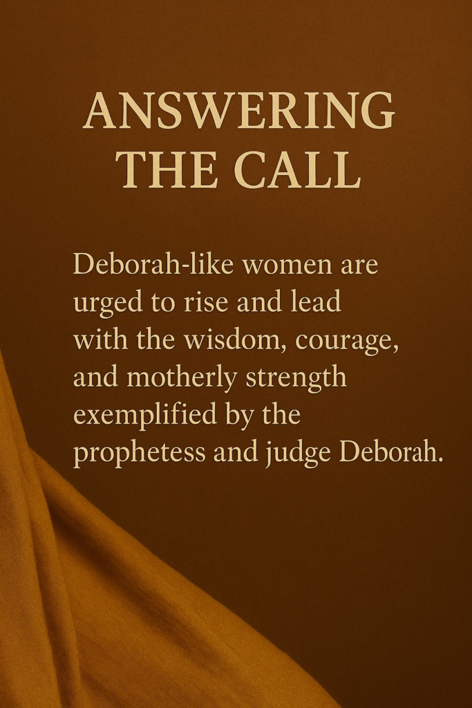 You are called to rise not just to survive, but to lead with grace. You are chosen to shine not just for yourself, but for generations after you. The Deborah Call is your invitation to awaken the leader within. “Arise, Deborah, arise! The Lord has gone before you. His wisdom will crown you, His courage will guide you, and His grace will sustain you.”